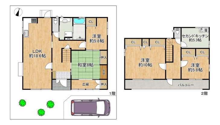 2.南向きの庭付き住宅