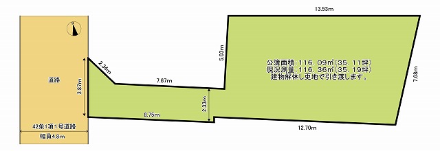 現在建物がございますが、解体撤去後、更地でお引渡しいたします。